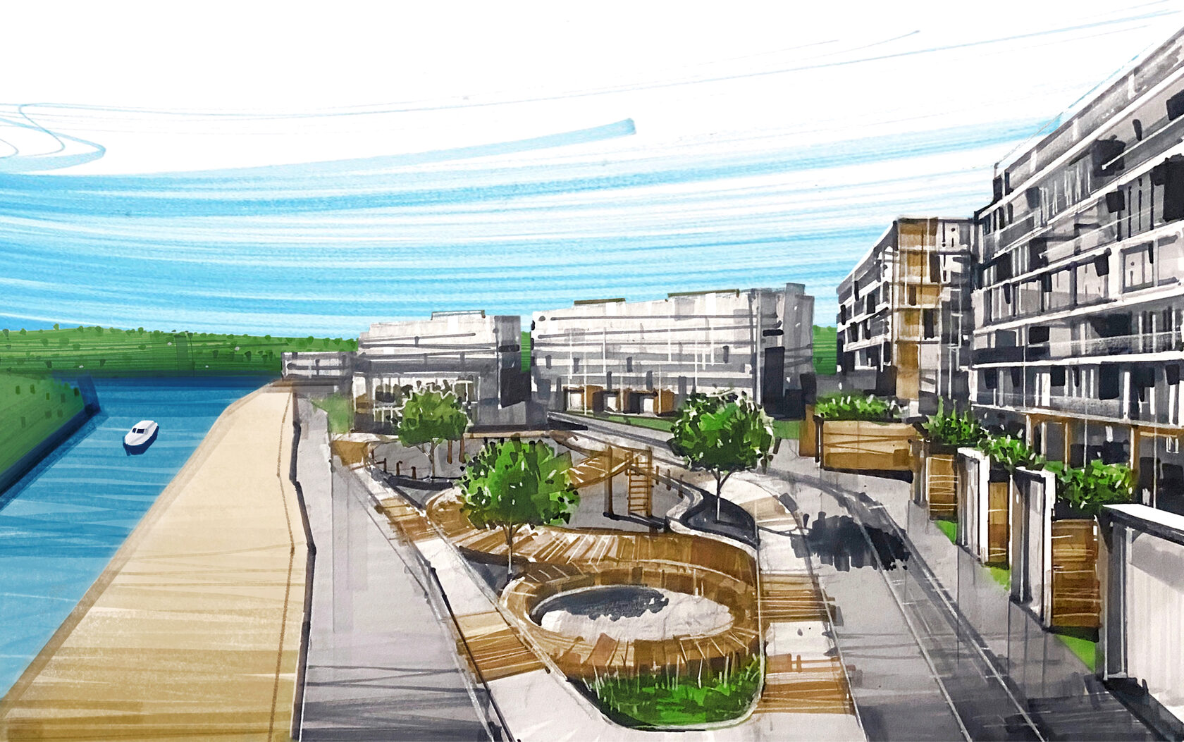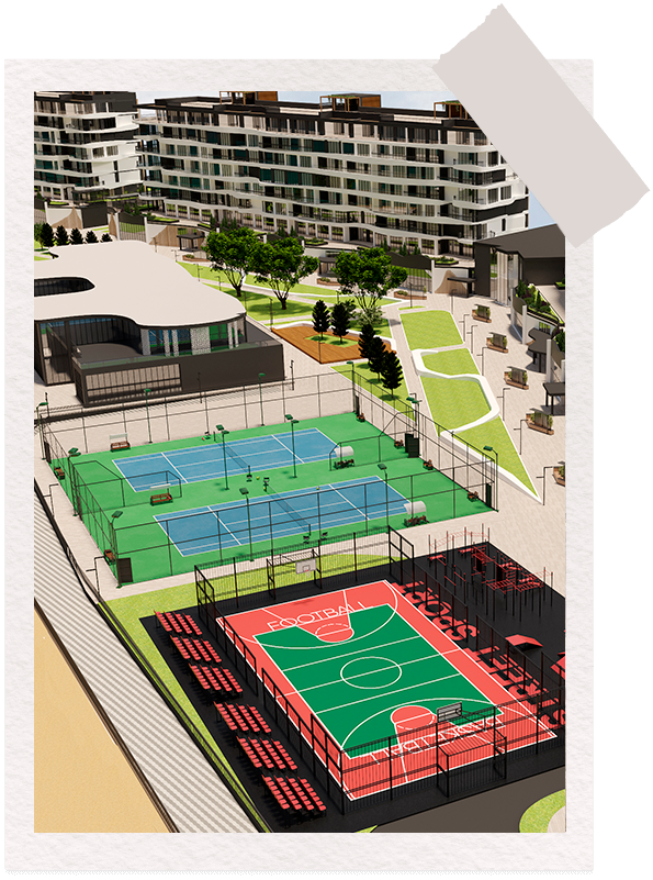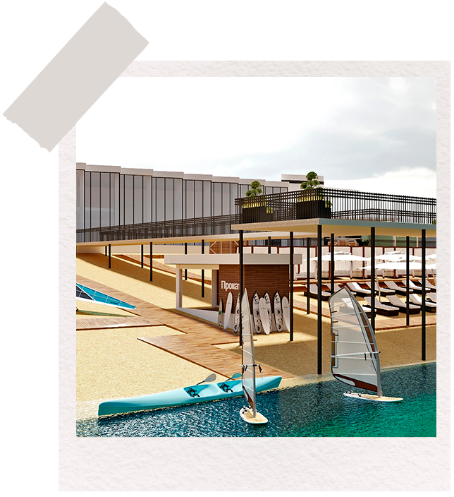 Территория комплекса разделена на несколько частей. Дома у центрального парка подойдут ценителям городской жизни — с кафе и ресторанами, магазинами, яркими уличными событиями и праздниками. Те, кому важно всегда быть в форме, предпочтут корпуса по соседству со спортивными объектами. Любители прибрежной жизни оценят апартаменты у воды с видами на реку и парки. Романтичным натурам, мечтающим просыпаться под пение птиц, точно понравятся корпуса на границе с заповедной зоной. Для семей с детьми самое подходящее решение — дома рядом с детскими площадками.